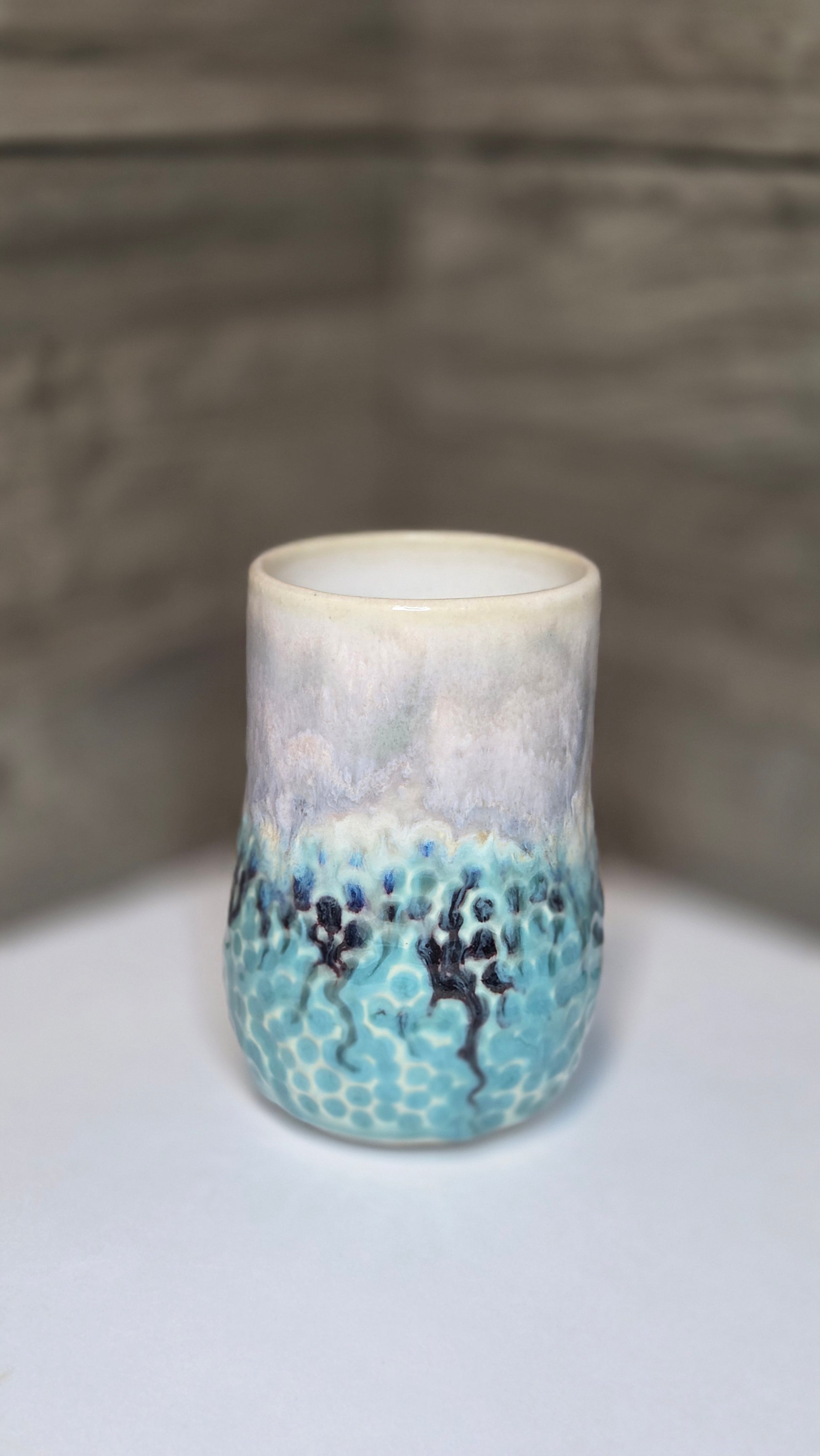 Cotton Candy colors of pink, purple and blue hug this textured piece. Measures approx. 3" wide by 5.5" tall.